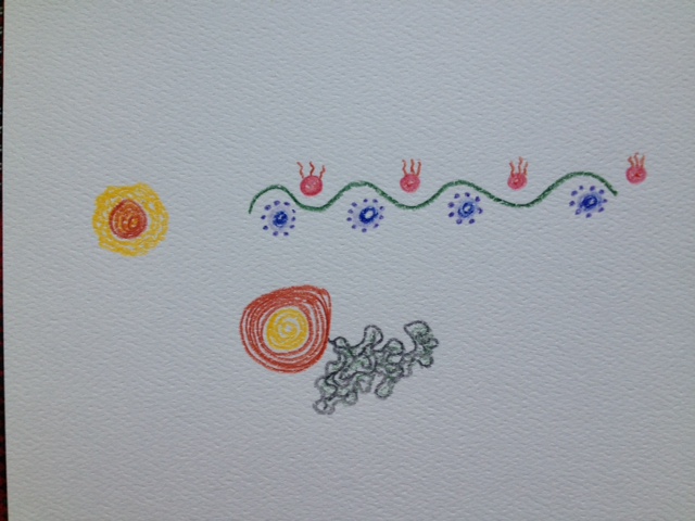 There is something about drawing that just lets me know that this time isn’t like any other time, and it is time to open myself up. I set an intention and see what happens. Meanwhile, I draw whatever shapes and colors come to me to draw.