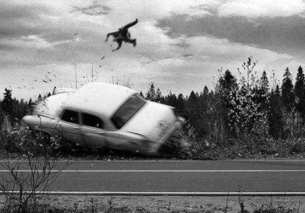 nothing. It hit a pothole in the road and flipped. The passenger flew out, arms