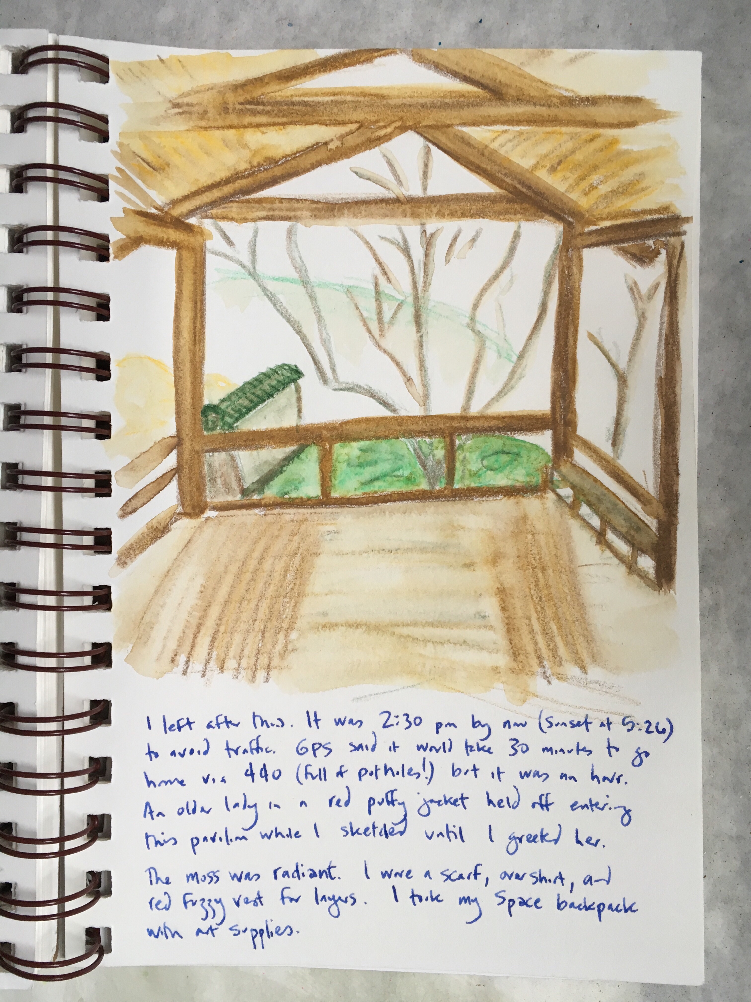 I sketched this with a pen instead of my usual watercolor pencils to be less obtrusive.
