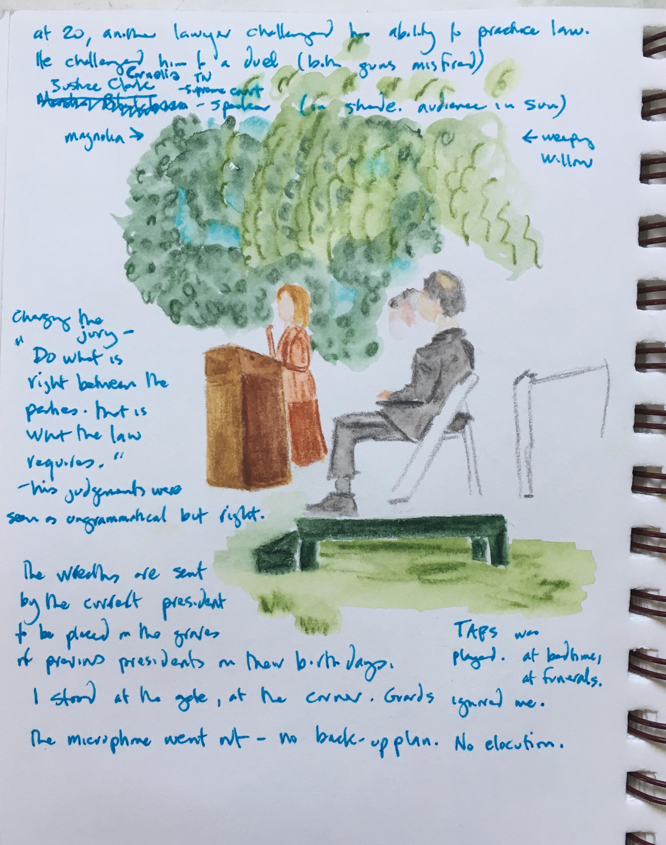 I also went around the fence, and sitting down on the grass, got to sketch the speakers. The person speaking is Justice Cornelia Clark of the Tennessee Supreme Court.