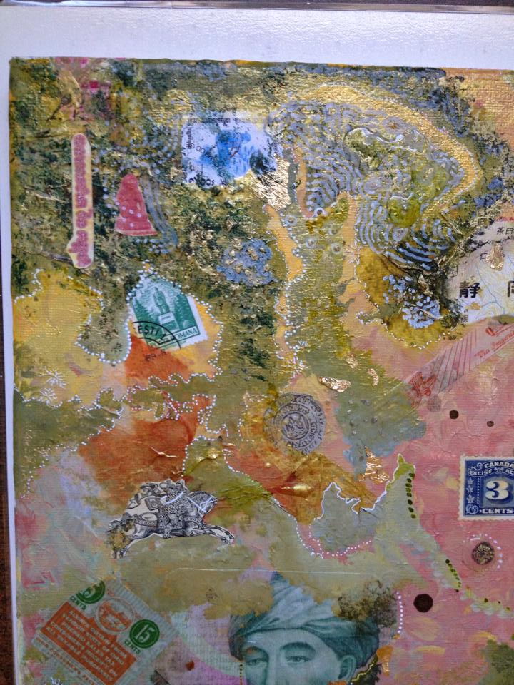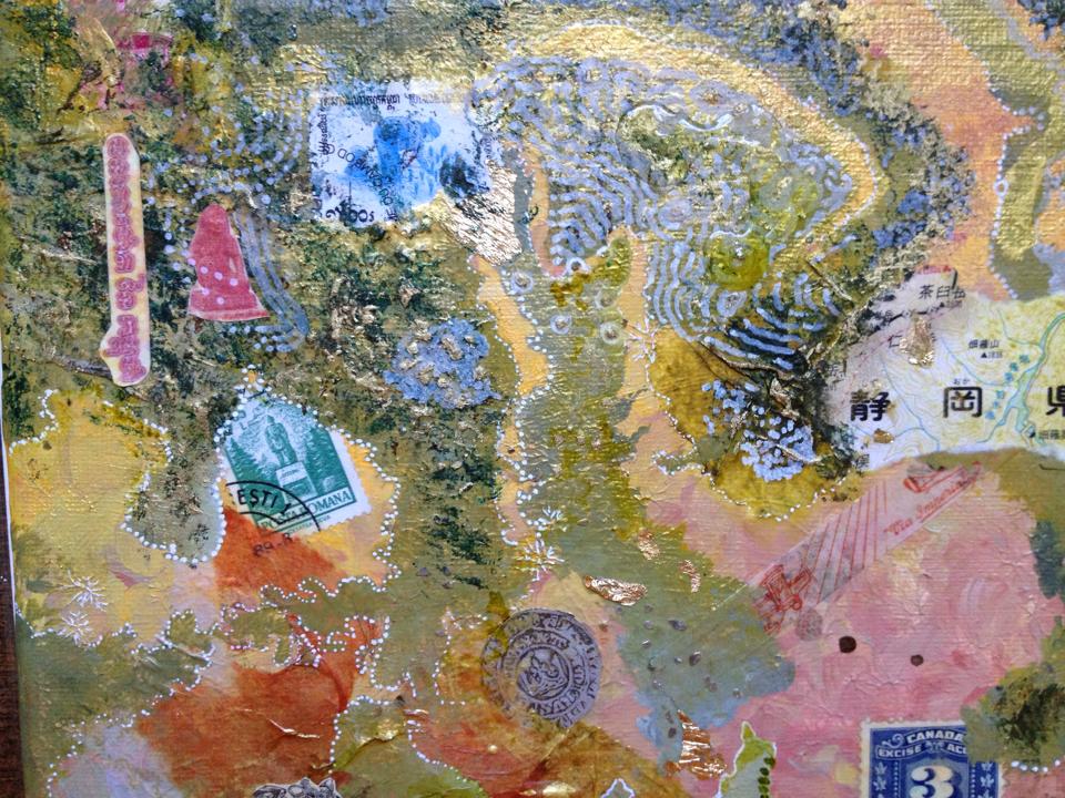 It was beautiful Tromp l’oeil. It is a koi’s eye-view of a pond. I went running with it. But I like goldfish and aquariums. So that is what I’m doing instead. But you can’t do that to start off with. Remember – paint the background first.