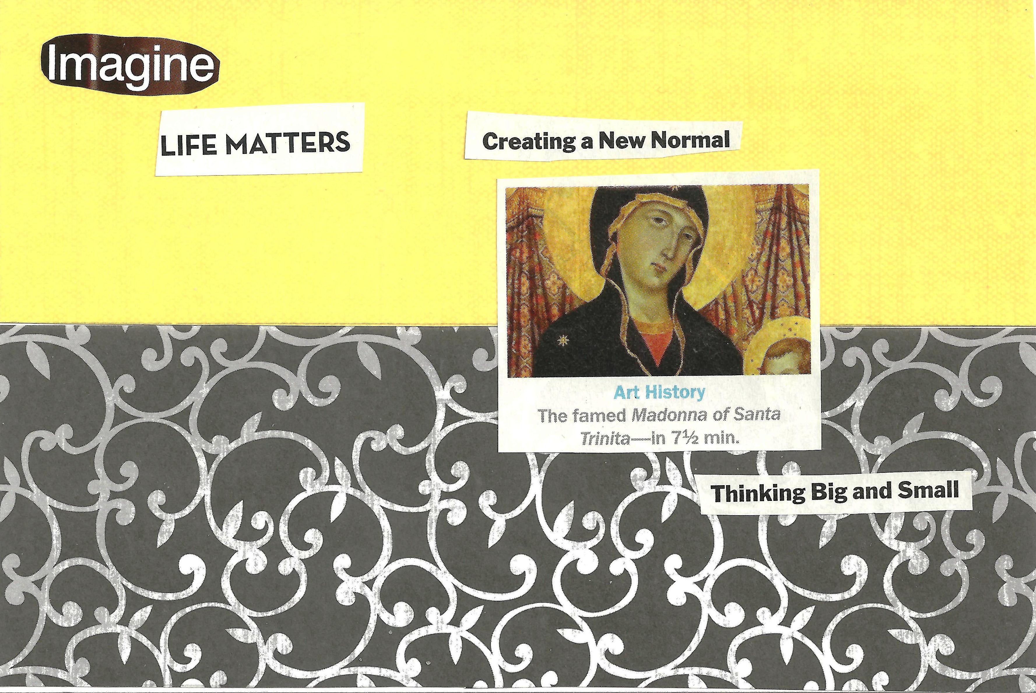 Both finished 7-29-16. I’ve realized that even if this looks like a simple project, it takes more time than I am able or willing to give to it to complete one from start to finish in a single sitting. So I accept that doing it in stages counts. Finding and cutting out the images and words from magazines is very time consuming, so I’m grateful I have them organized well to find the clippings when I need them