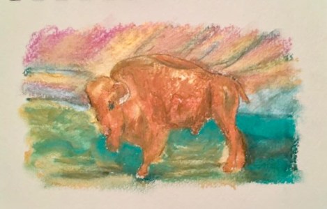 I’m not sure where I got the idea that I had to finish a painting all at once. I have wirework projects that I can’t finish all at once. The work is too hard on my hands and wrists to complete it in one day. There are certainly beading projects that are sitting in plastic bags in bins right now, half finished. I may never finish them.
