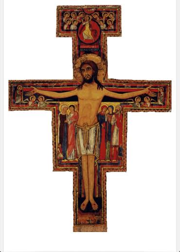 St. Francis saw this cross in the church of San Damiano and heard it say “Rebuild my church”. He then did literally that – stone by stone he repaired a falling down church near his home.