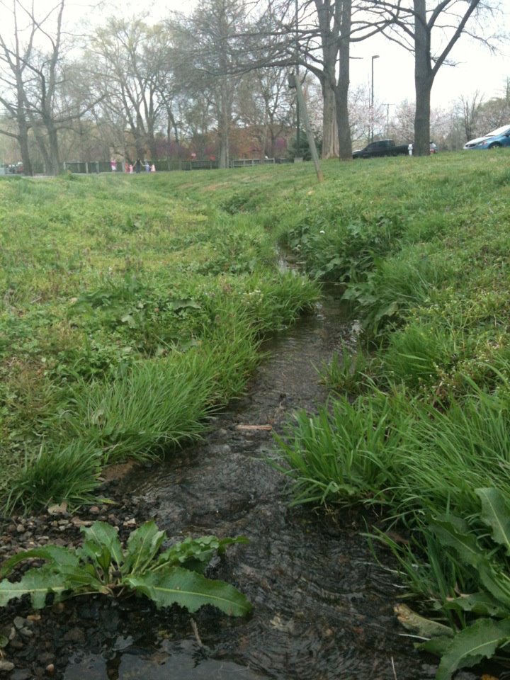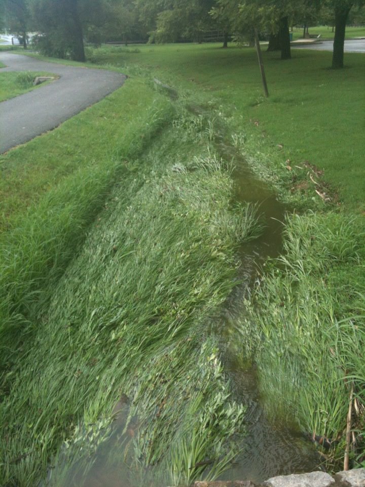 8-9-12 There was a very hard storm just hours before, and the force of the water flattened the grass in the stream.