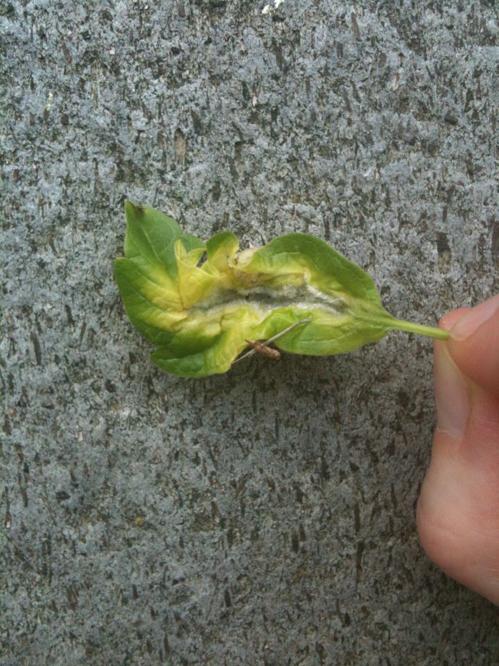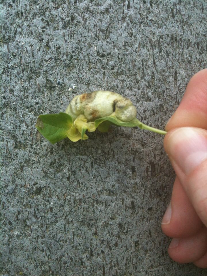 4-30-12 A bug cocooned in a leaf. It fell off – I didn’t pull it off to take this picture.