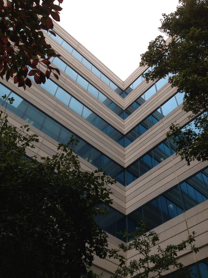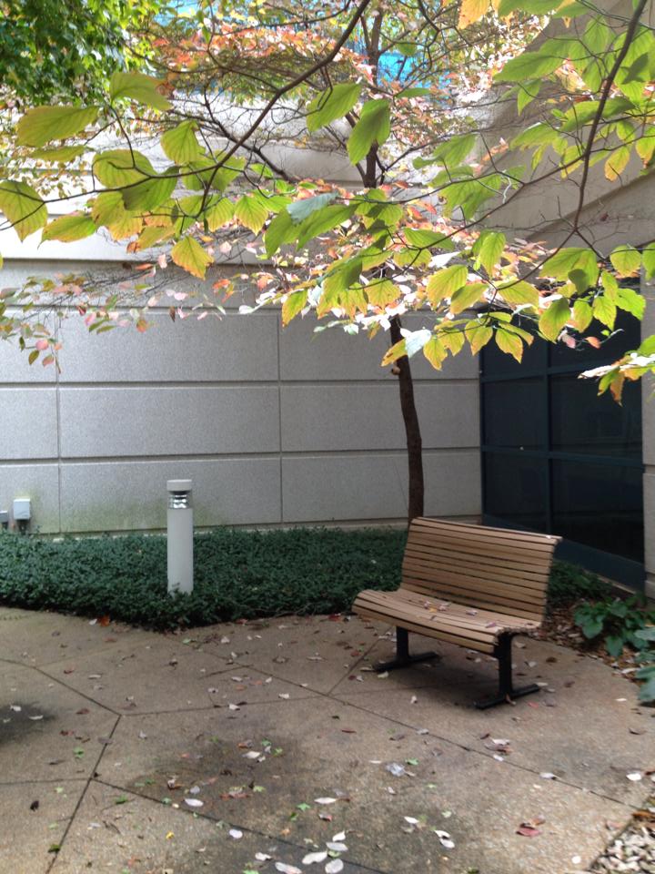 I looked down from the window in the hallway on the sixth floor where the office is. I saw trees – and not in a place I would expect. They were surrounded by the rest of the building. It was a tiny enclosed courtyard. I had to go find it.