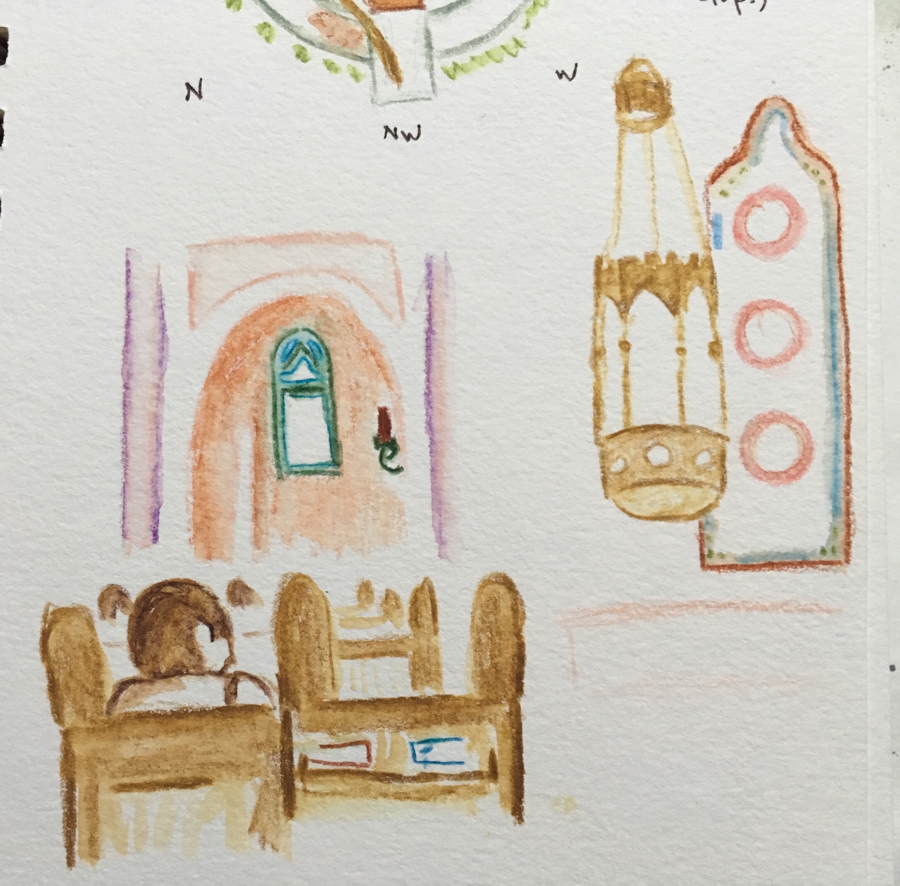 Then to work. I got off at 6 (using vacation time) to go to the Seder presentation at Celebration Lutheran. This is outside, looking at the prayer garden. The trees are green with lichen. The light was amazing.